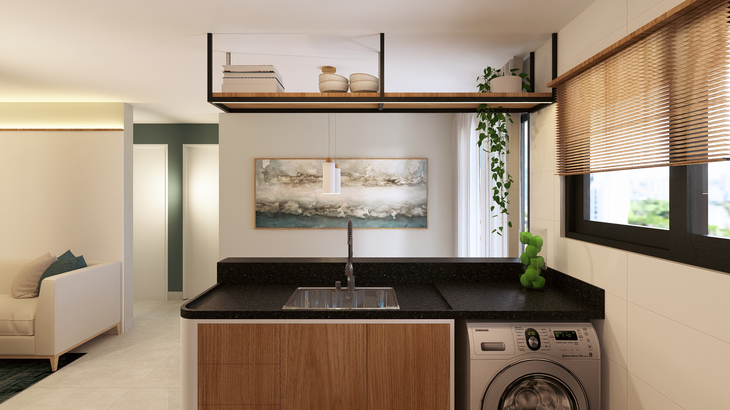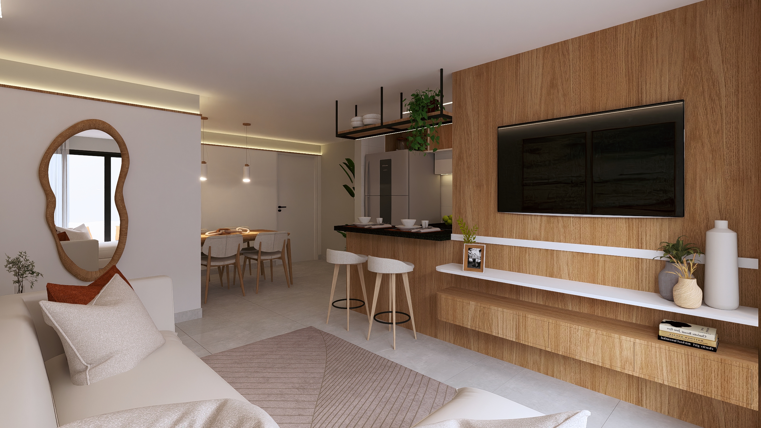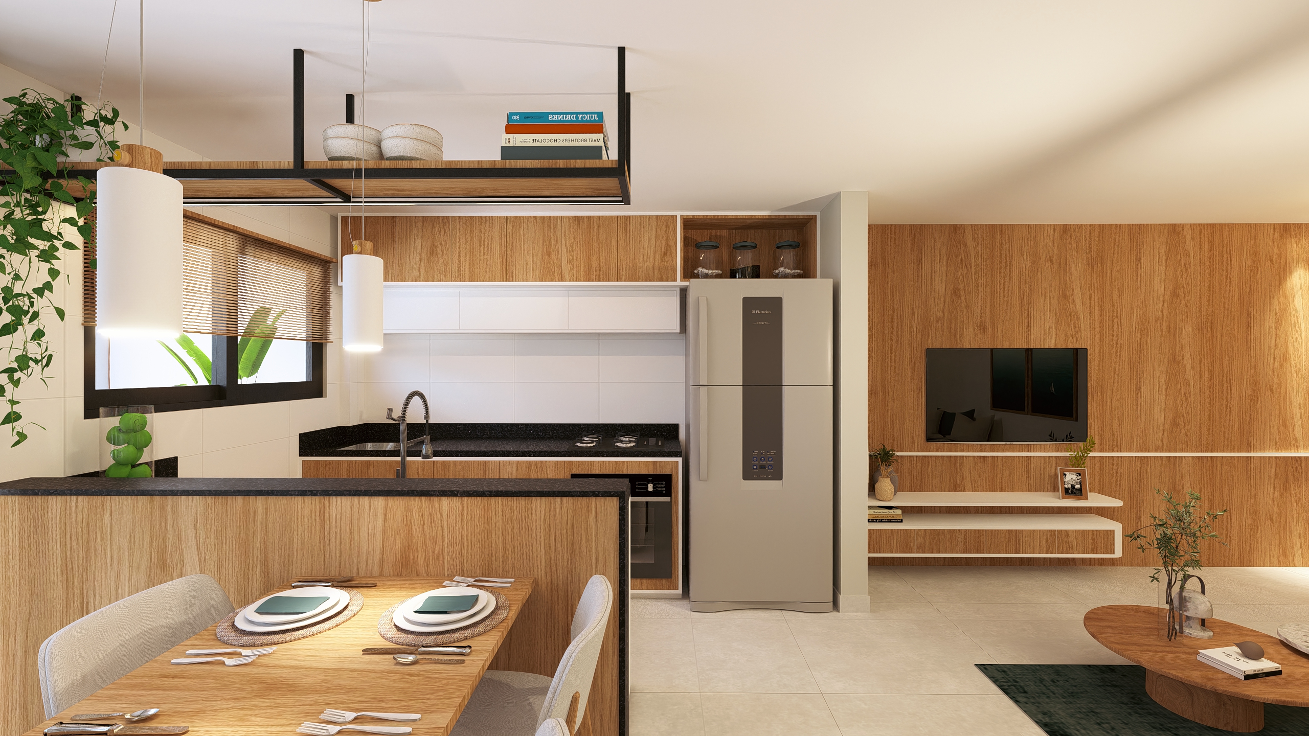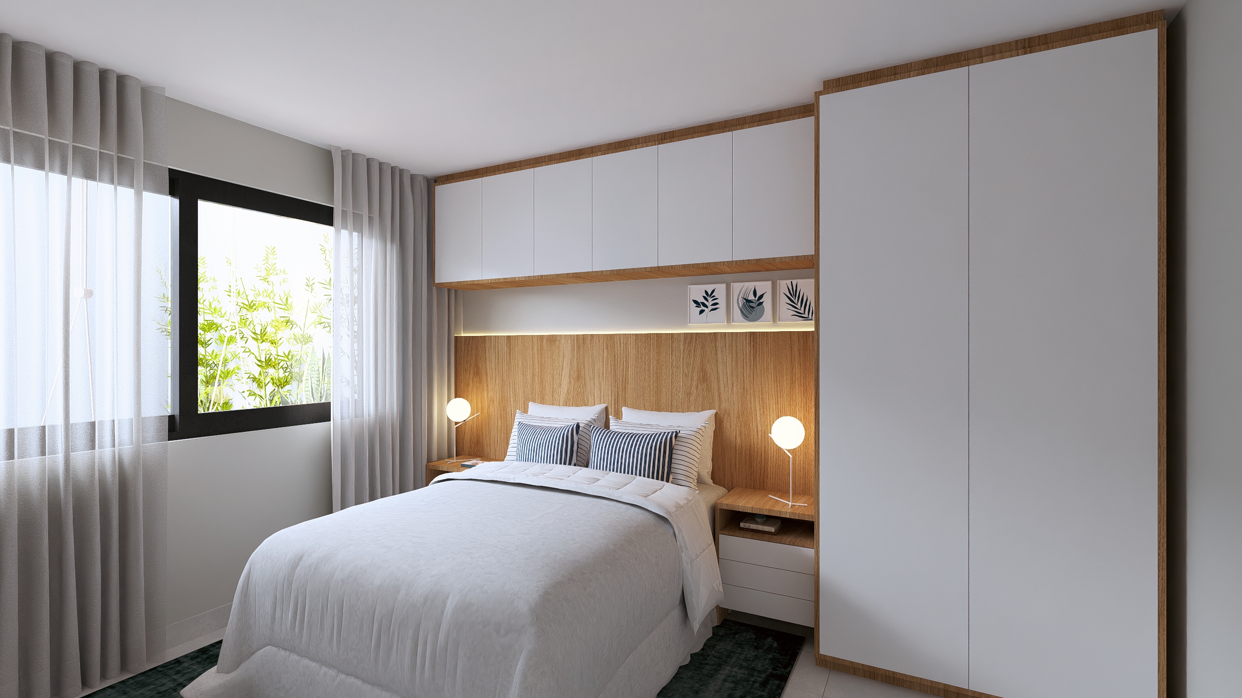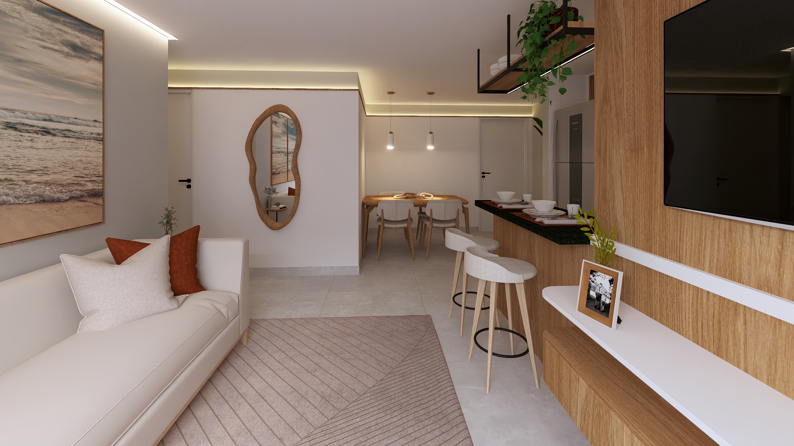 Nos andares superiores, estão distribuídas as unidades com varanda, projetadas com plantas funcionais que favorecem a ventilação natural e criam espaços mais iluminados e acolhedores.