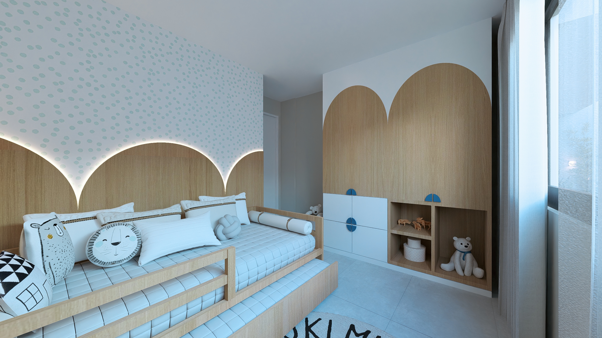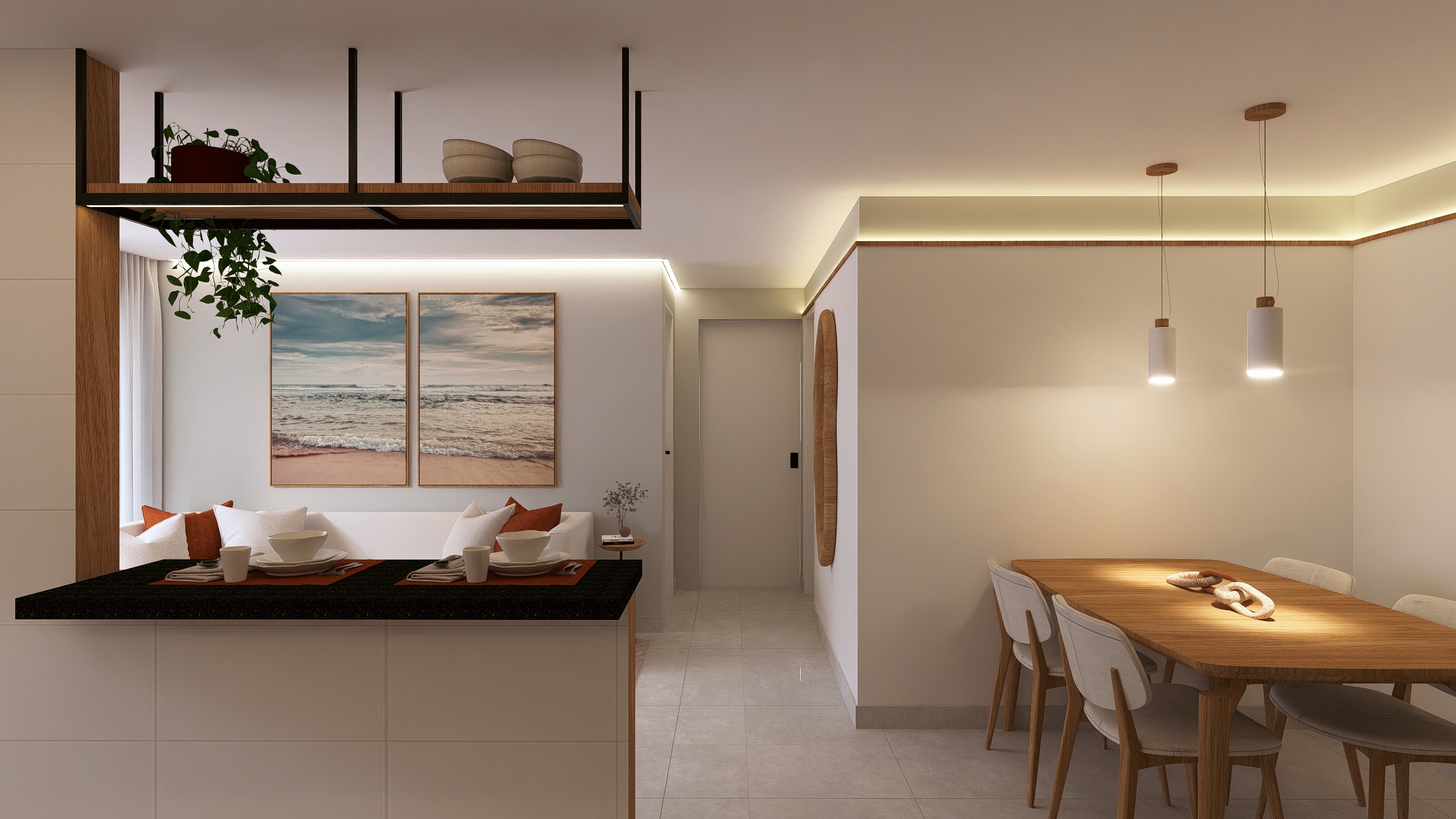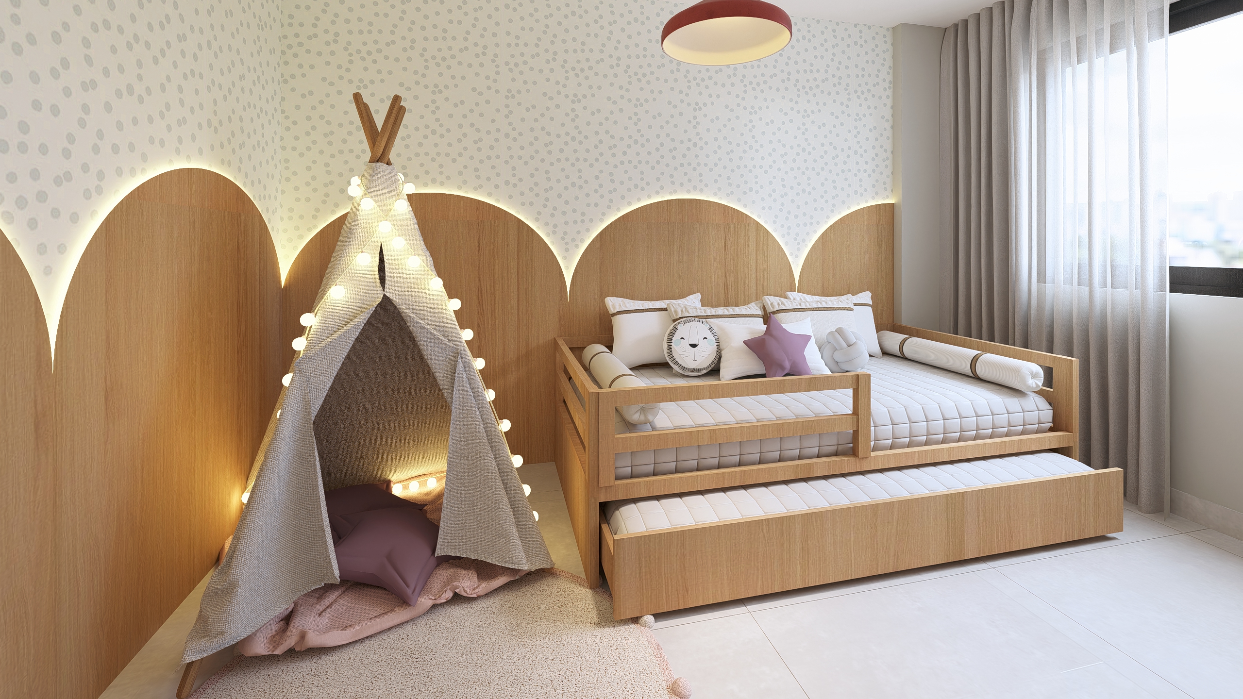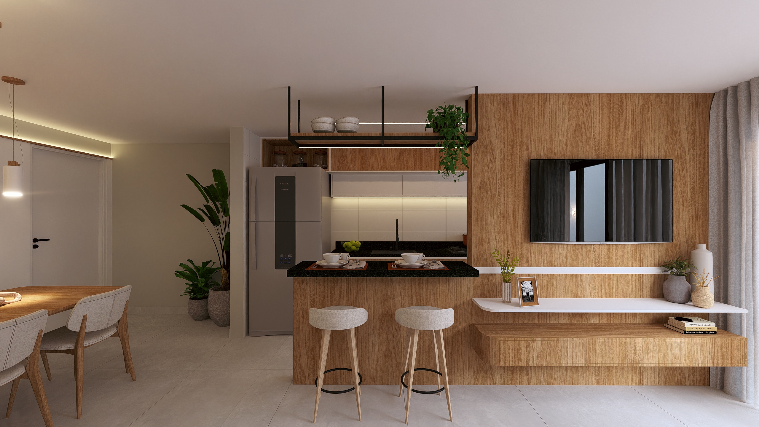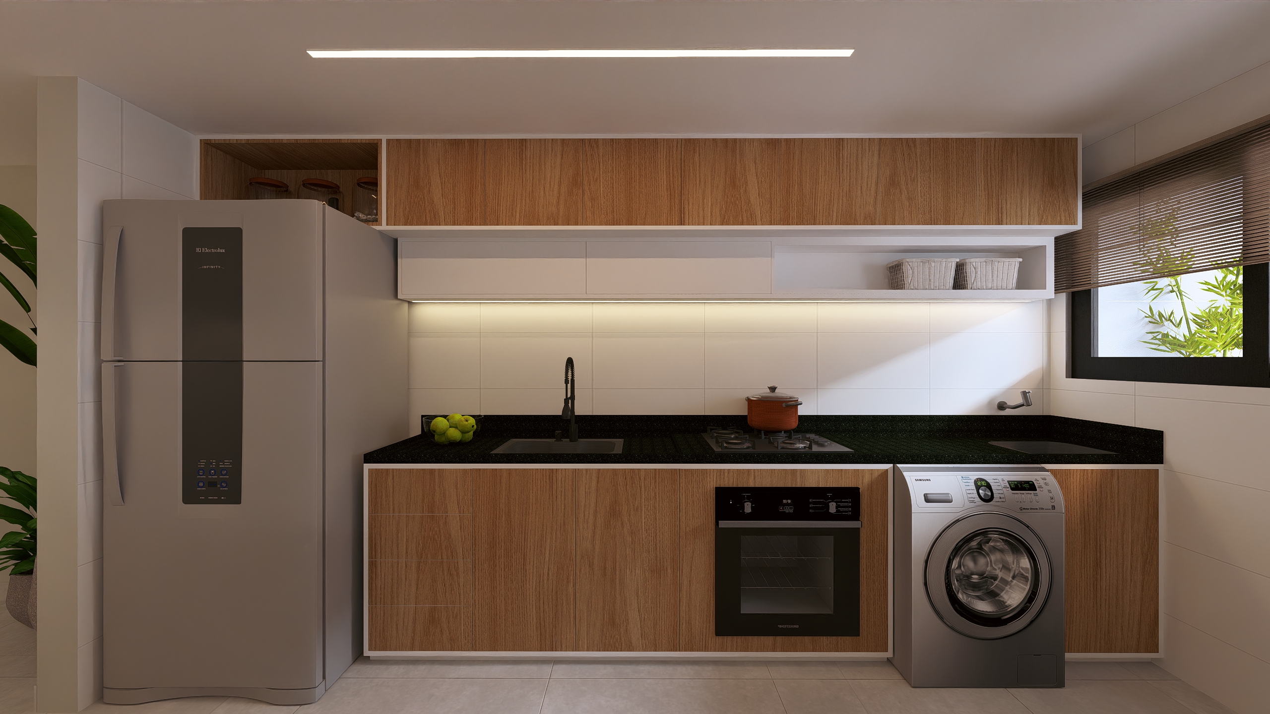 Nos andares superiores, estão distribuídas as unidades com varanda, projetadas com plantas funcionais que favorecem a ventilação natural e criam espaços mais iluminados e acolhedores.