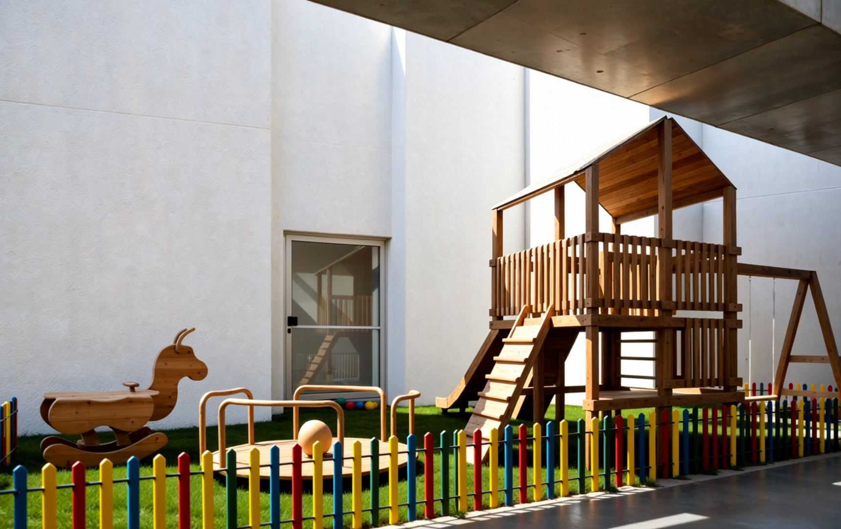 Térreo: recepção (lobby), brinquedoteca, parquinho infantil e vagas de estacionamento.