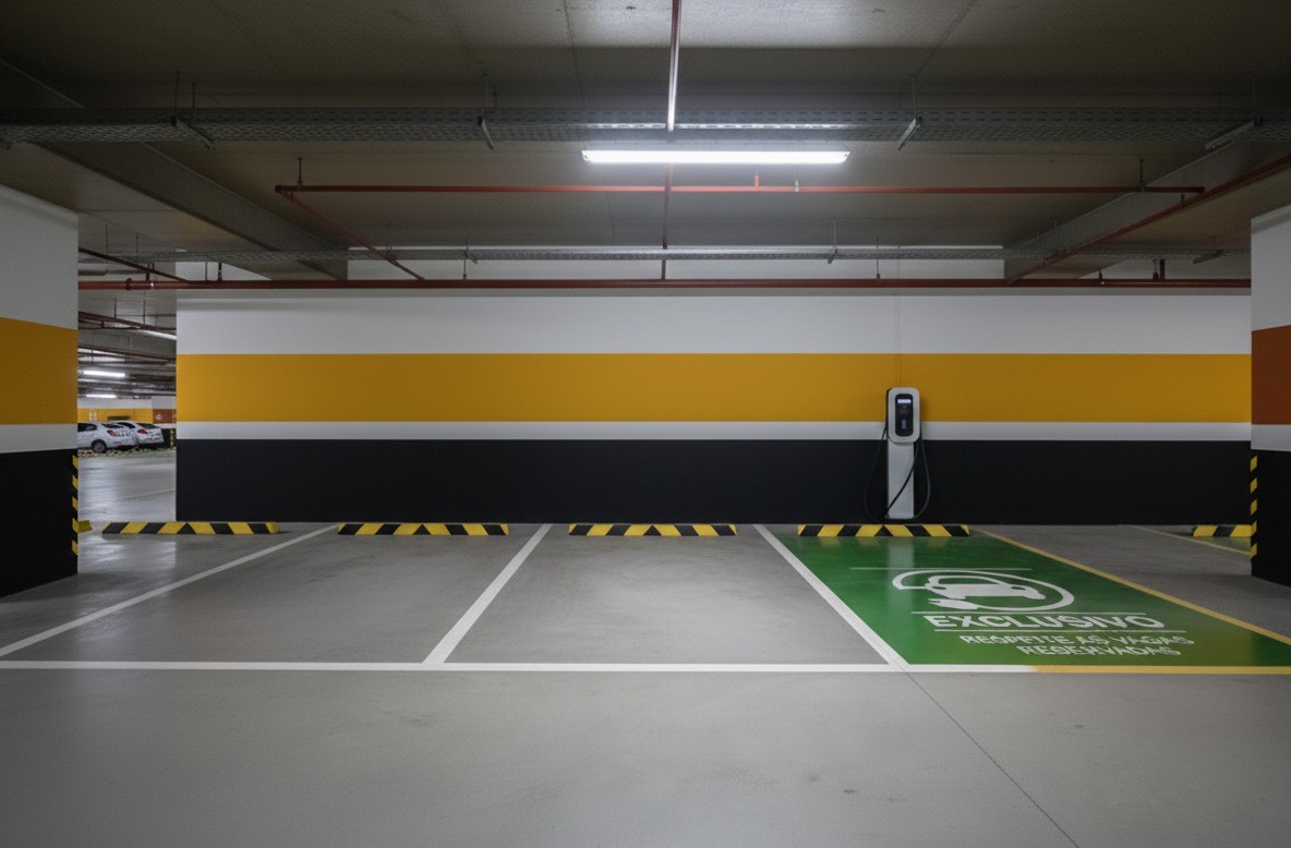Apartamentos com 2 vagas, unidades de 3 quartos com 3 vagas, coberturas com 3 vagas, e lojas com 1 vaga privativa em escritura.
