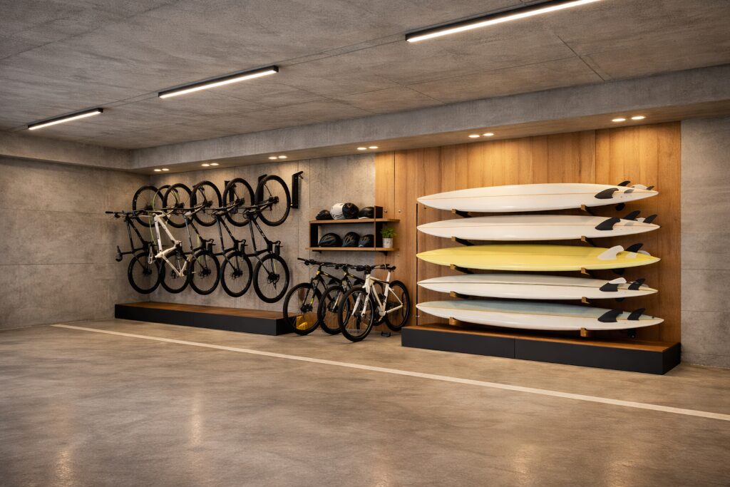 O empreendimento dispõe de uma infraestrutura completa de conveniência e lazer, com portaria digital, espaço multiuso, academia, lavanderia, brinquedoteca e salão de festas. Para quem valoriza mobilidade e lazer ao ar livre, o projeto também conta com bicicletário e guarderia de pranchas, reforçando um estilo de vida ativo e conectado ao entorno.