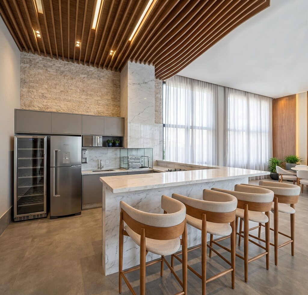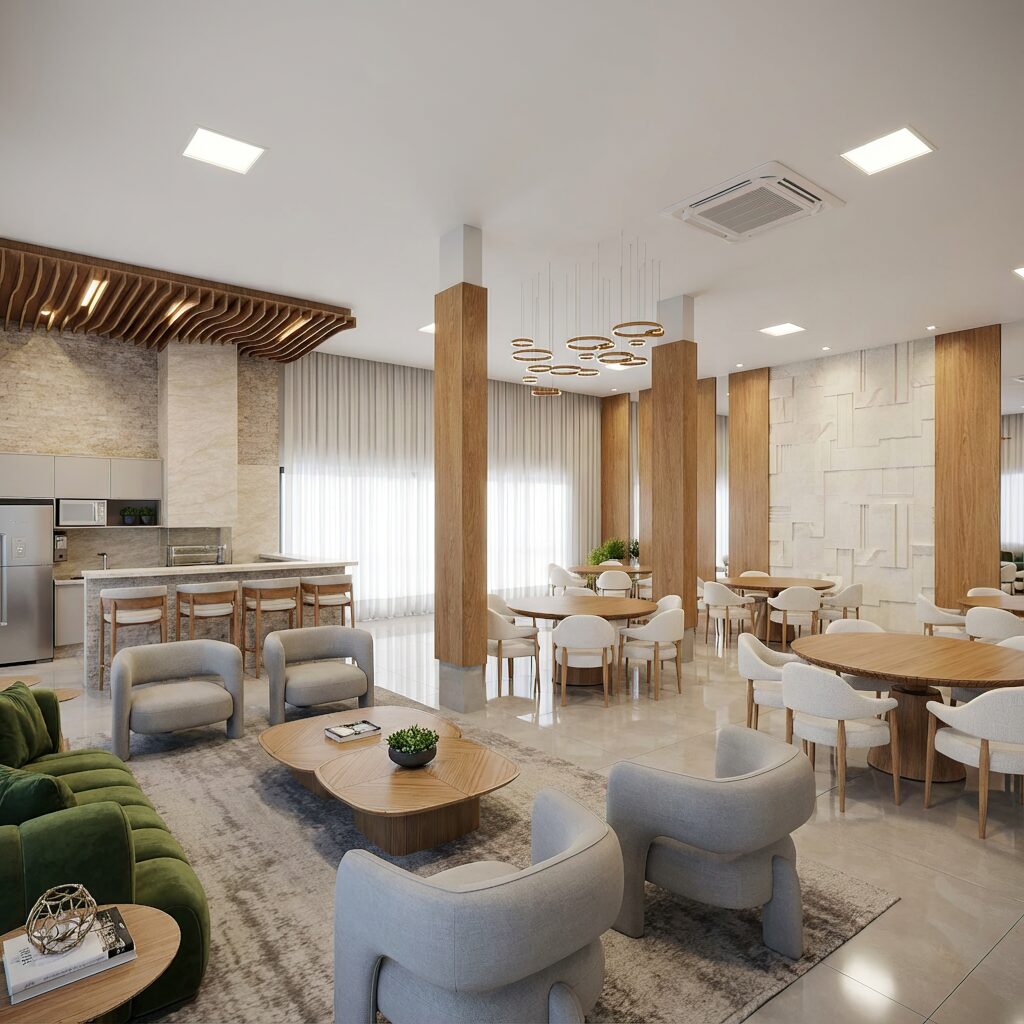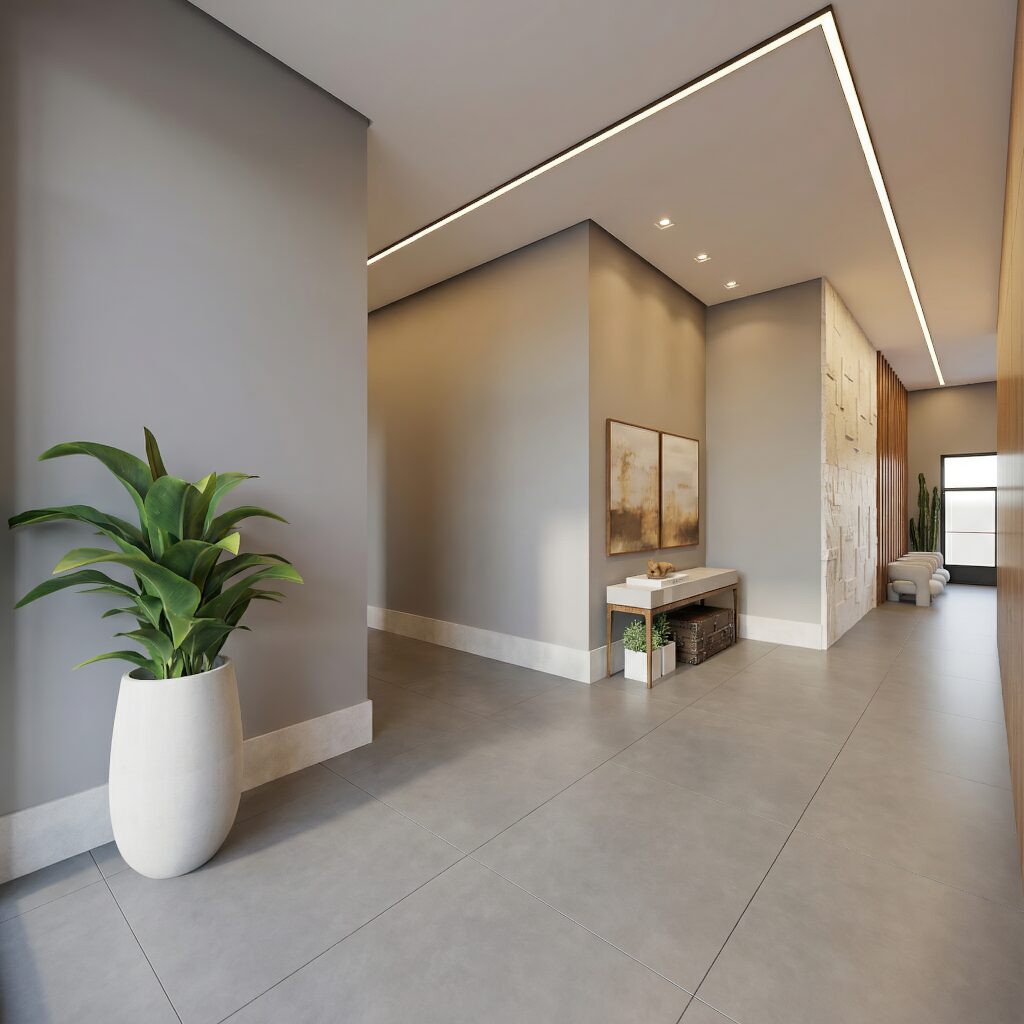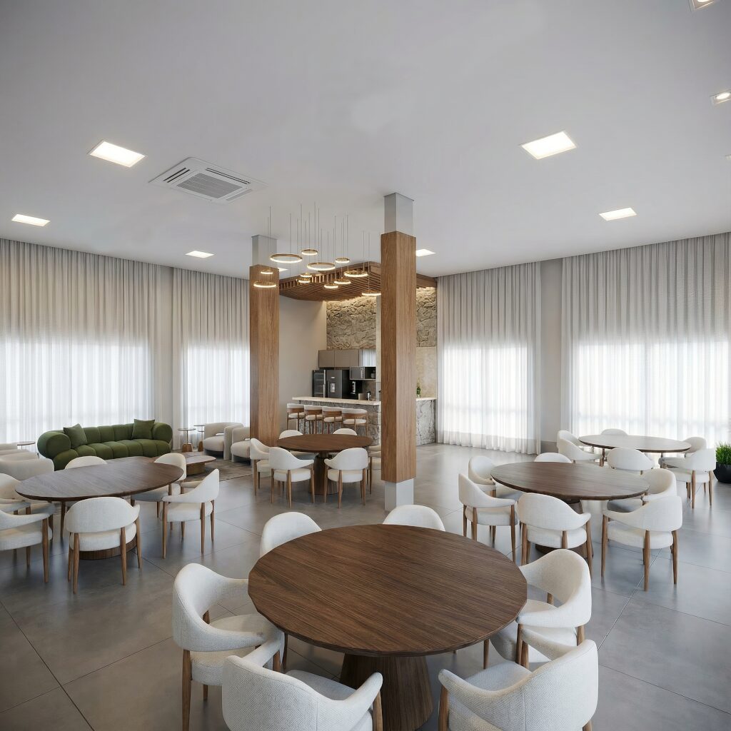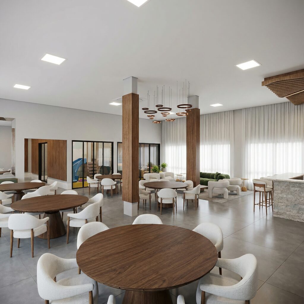 Todas as unidades contam com 1 quarto, varanda e vaga de garagem coberta, garantindo conforto, privacidade e praticidade no dia a dia. A integração entre os ambientes internos e externos valoriza a ventilação natural e cria uma atmosfera leve e agradável.