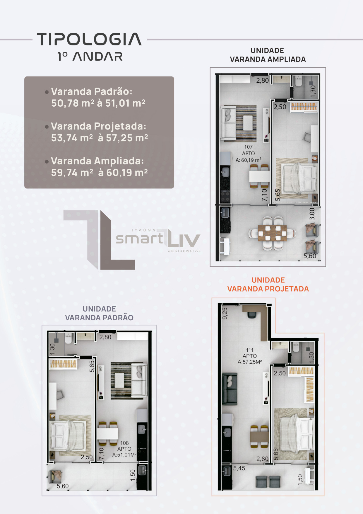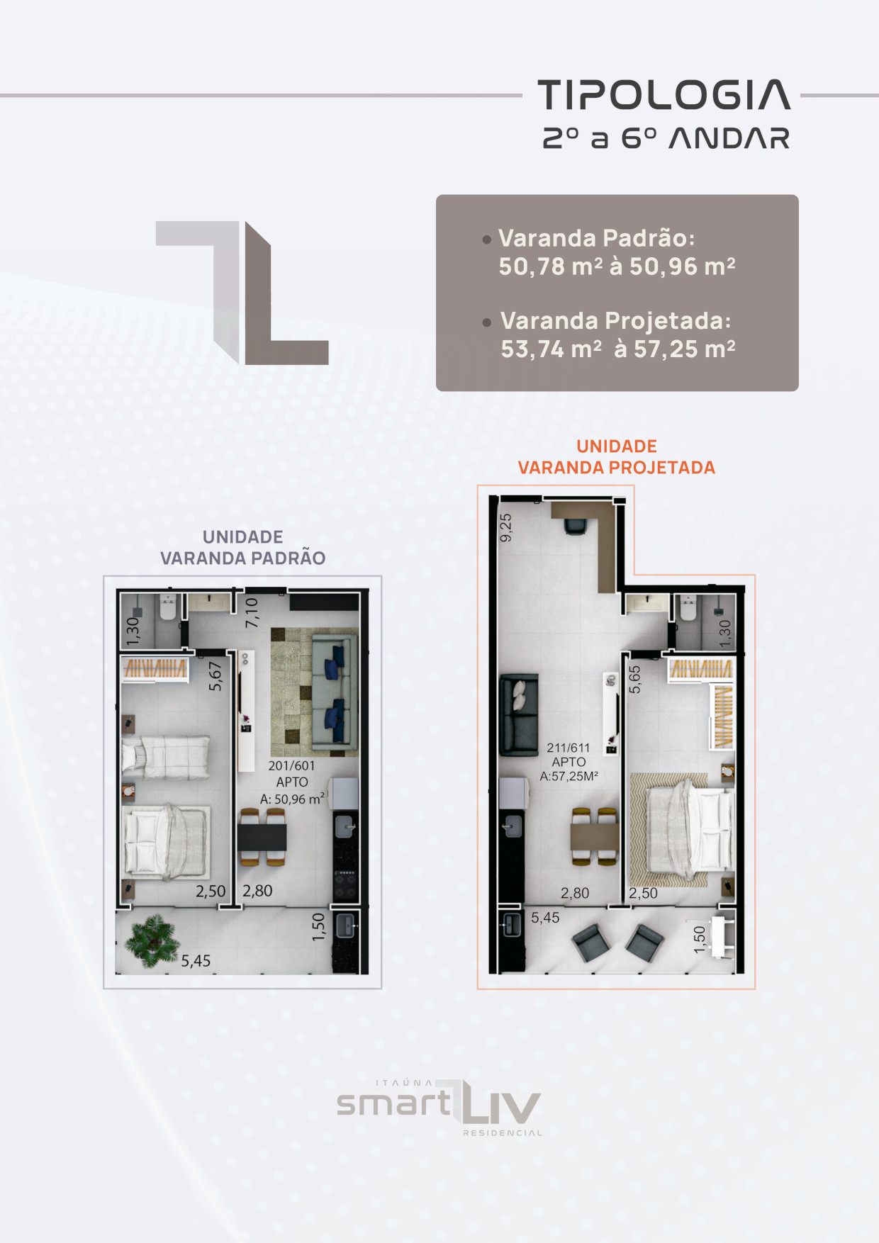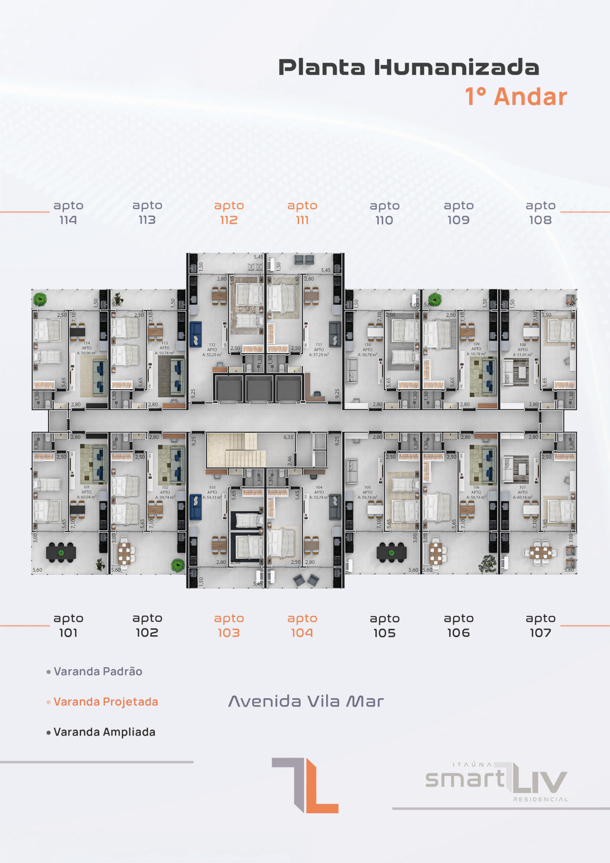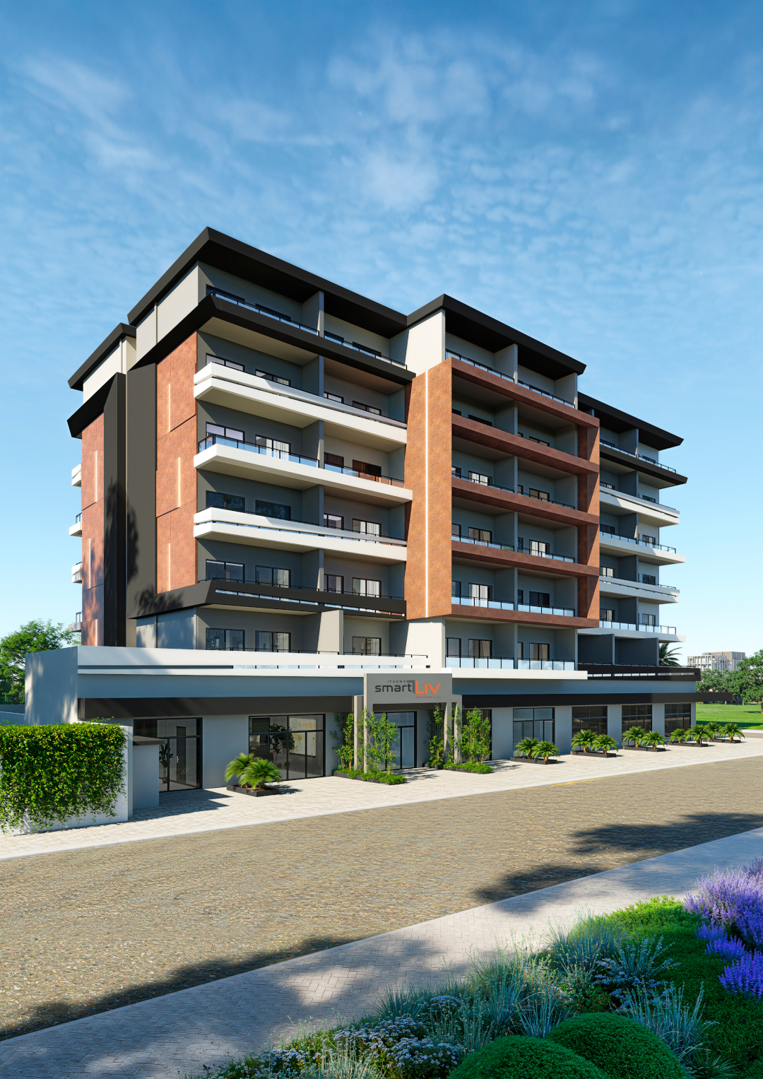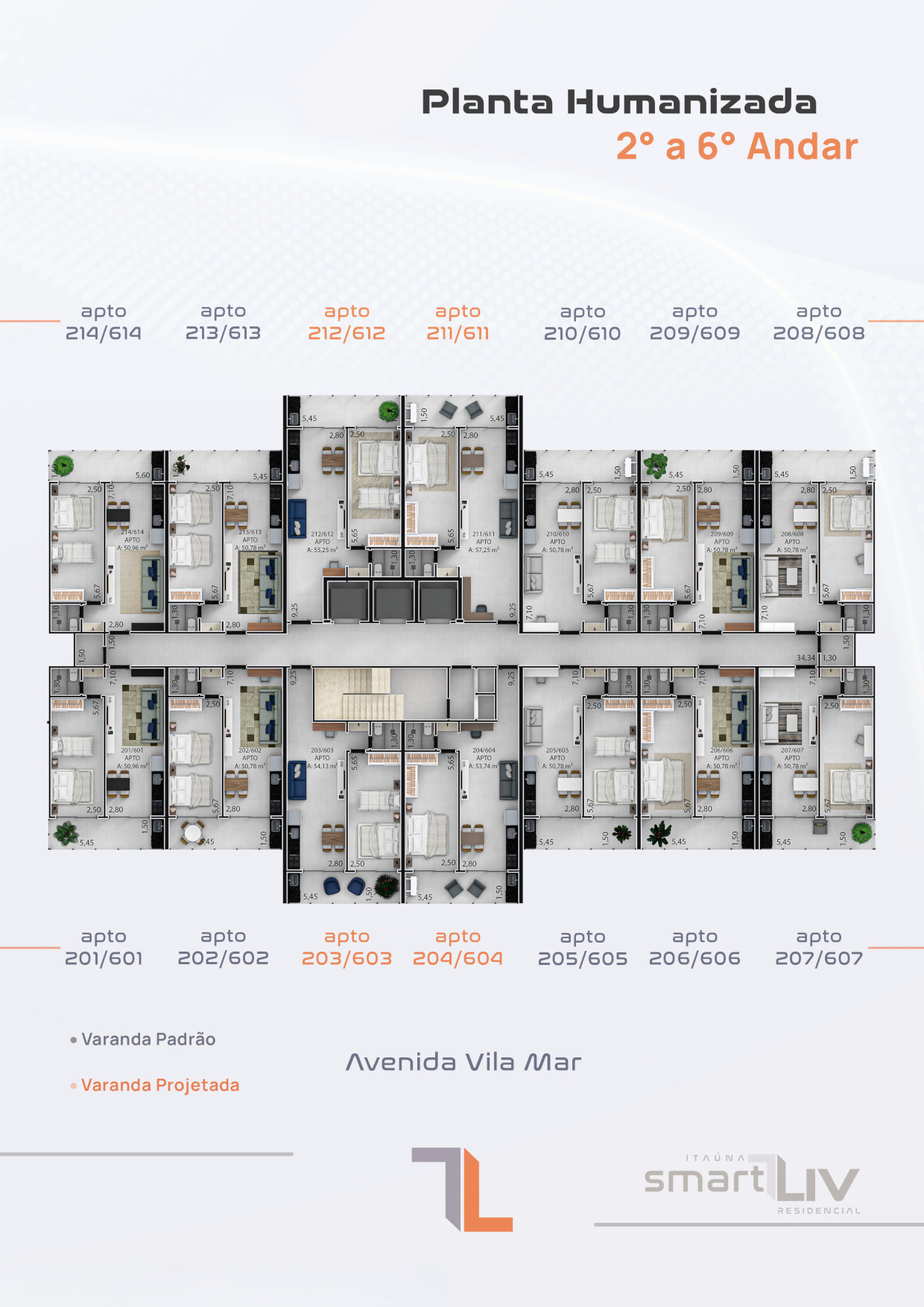 Com 84 apartamentos, distribuídos em pavimentos com 14 unidades por andar, o projeto oferece organização, fluidez e uma experiência residencial completa. As plantas versáteis de 50 a 60 m² foram cuidadosamente desenvolvidas para otimizar os espaços, proporcionando ambientes acolhedores, bem iluminados e funcionais.