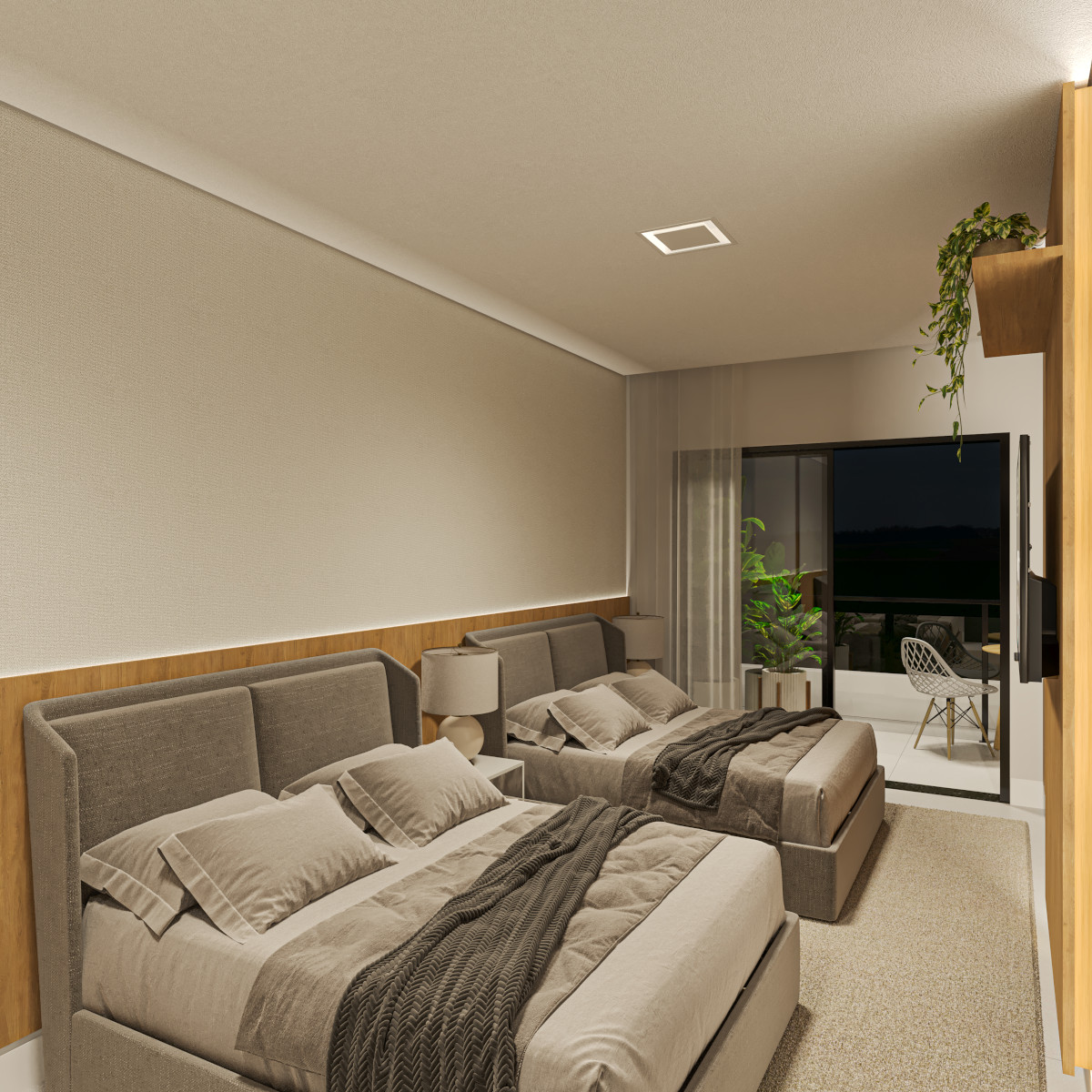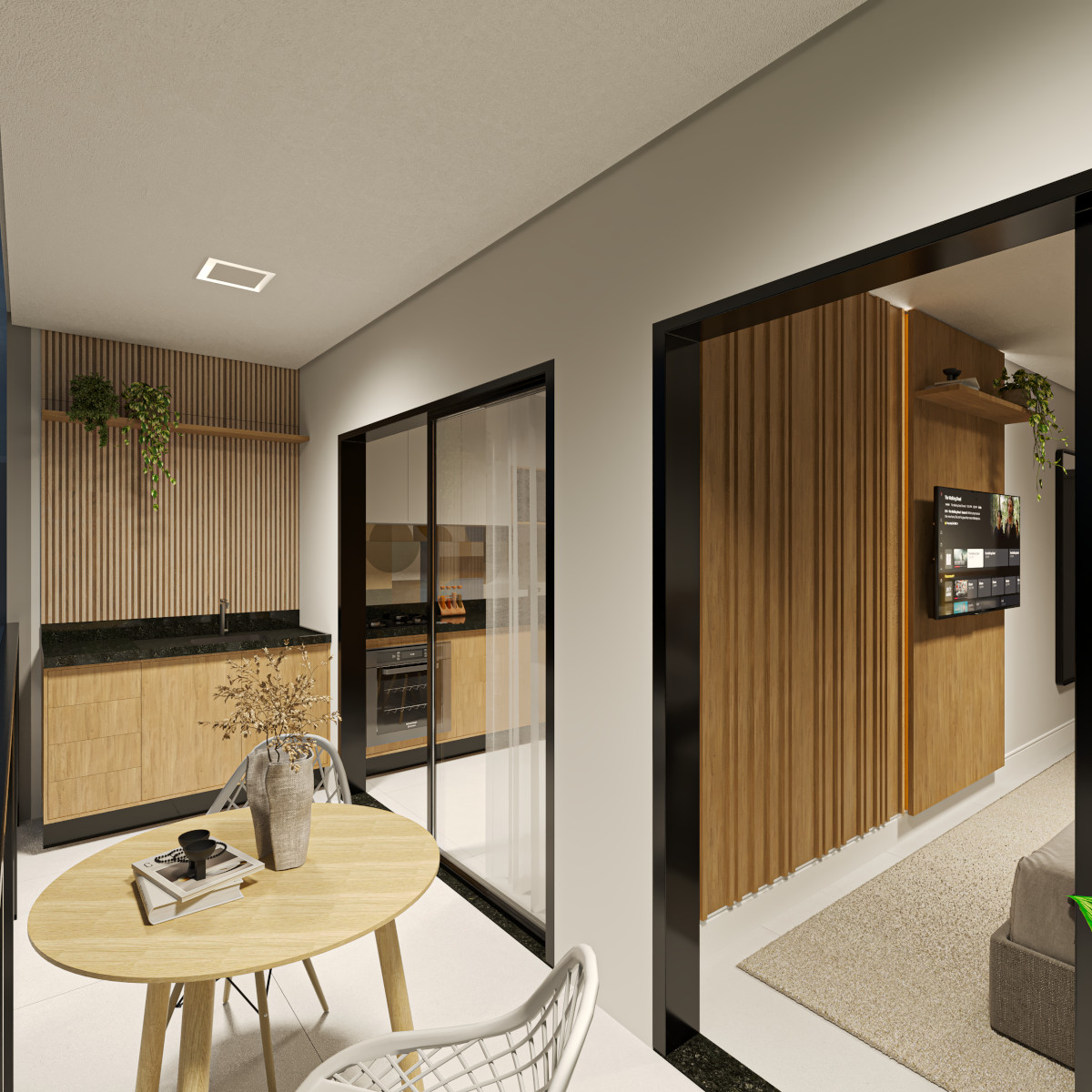 Todas as unidades contam com 1 quarto, varanda e vaga de garagem coberta, garantindo conforto, privacidade e praticidade no dia a dia. A integração entre os ambientes internos e externos valoriza a ventilação natural e cria uma atmosfera leve e agradável.